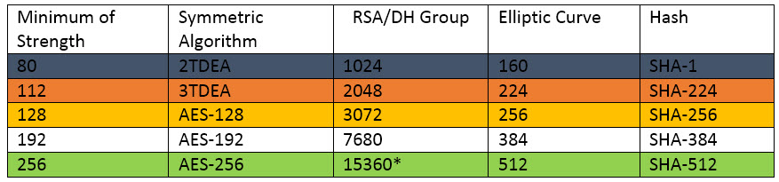 For example, if RSA 2048 algorithm is used to change keys or the safekeeping of certificates, the entire system will be working at 112 bit.